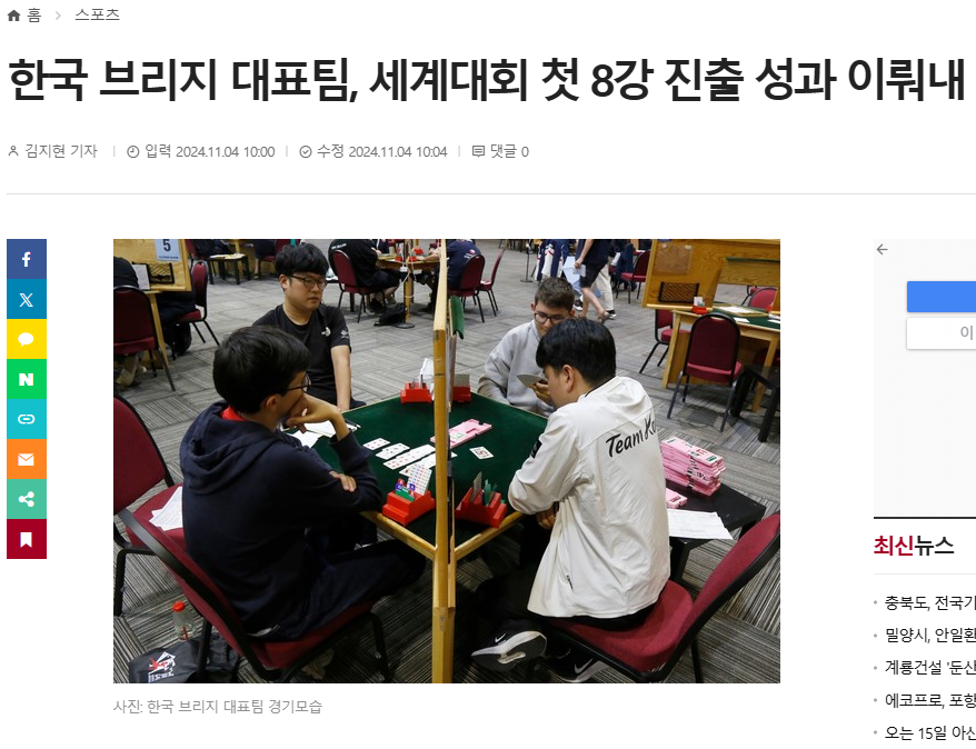 노승진교수님, 월드브리지게임 아시아 유일 한국최초 8강 진출~!!!