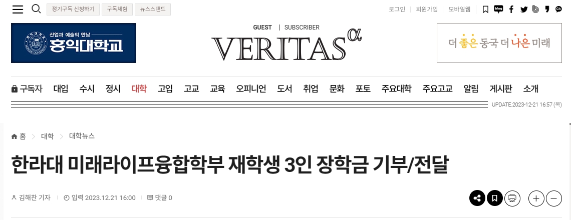 미래라이프융합학부 재학생 장학금 기부