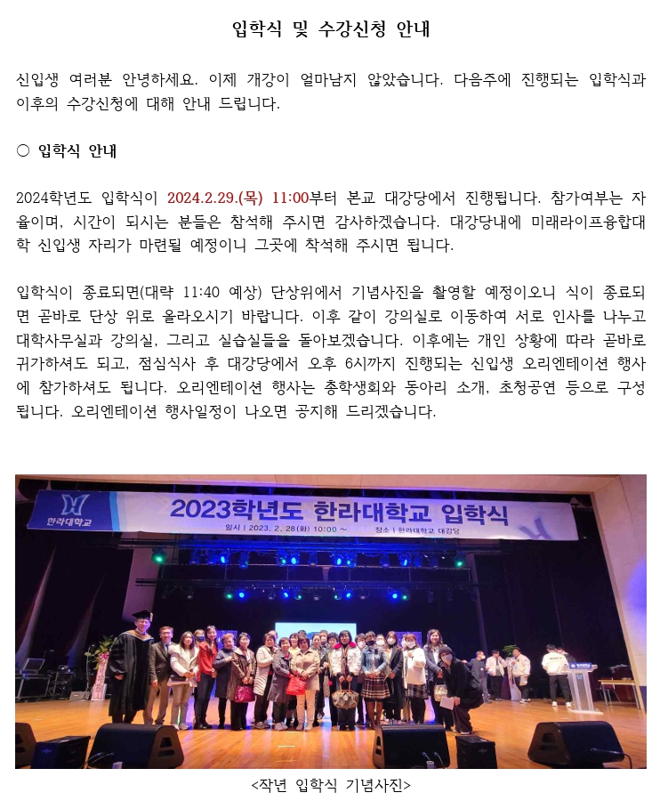 (신입생) 입학식 및 수강신청 안내