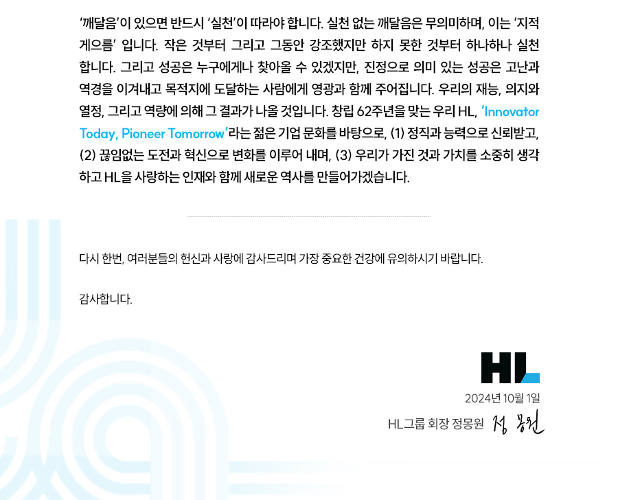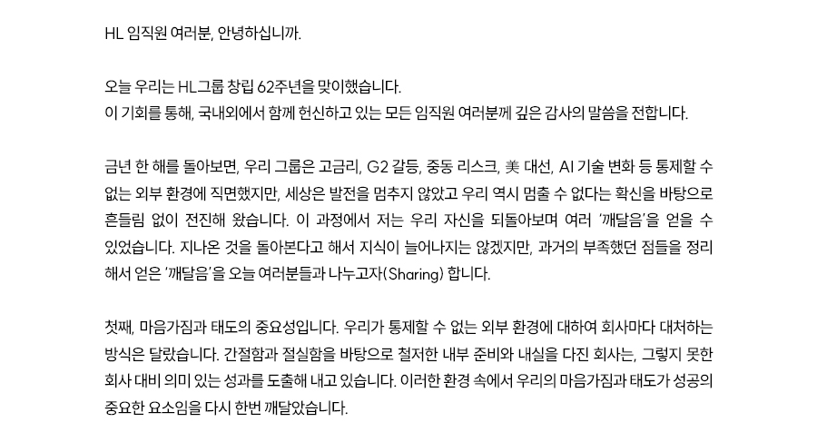HL그룹 창립 62주년 기념사(정몽원회장님)