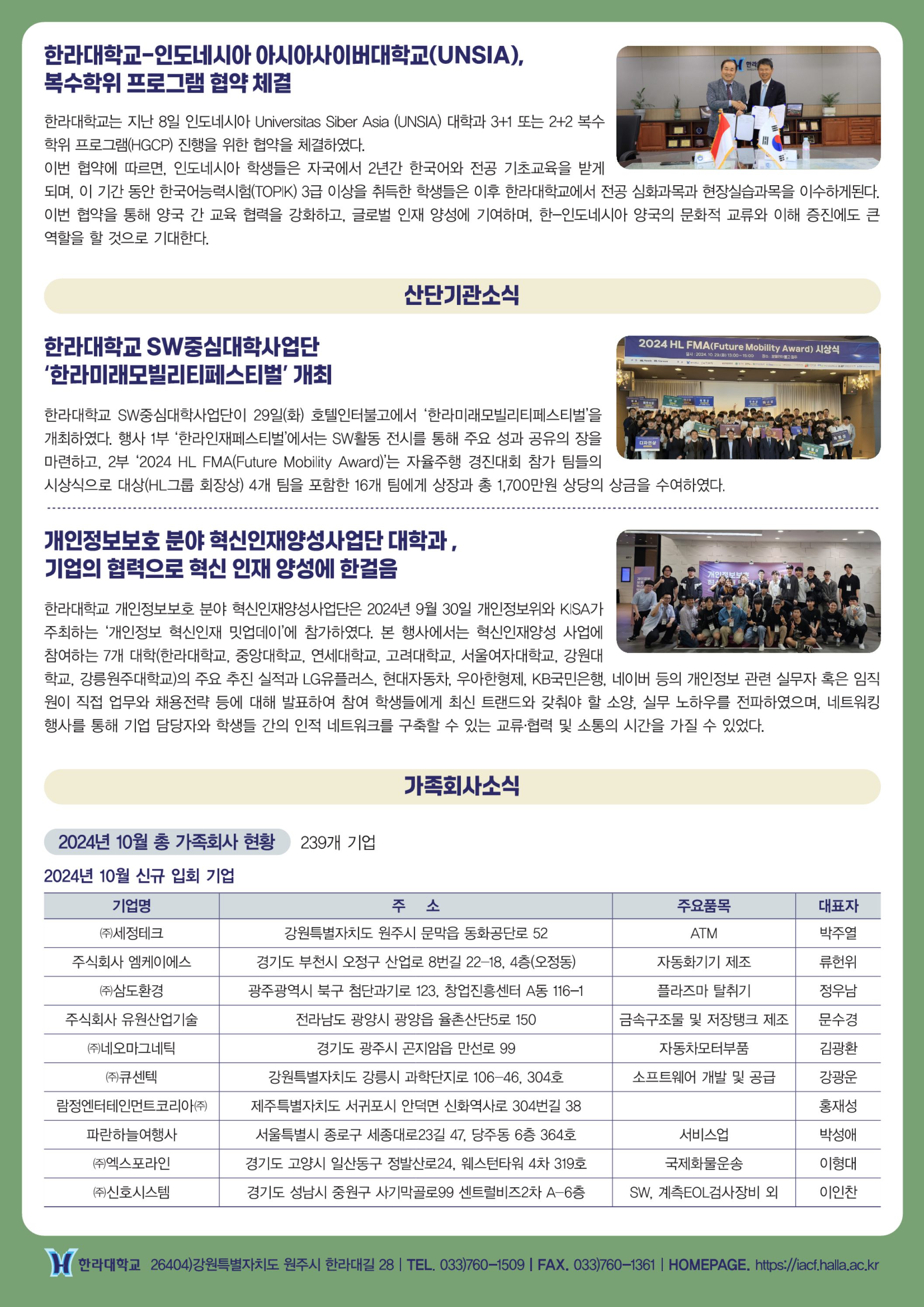 한라대학교 산학협력단 10월 뉴스레터