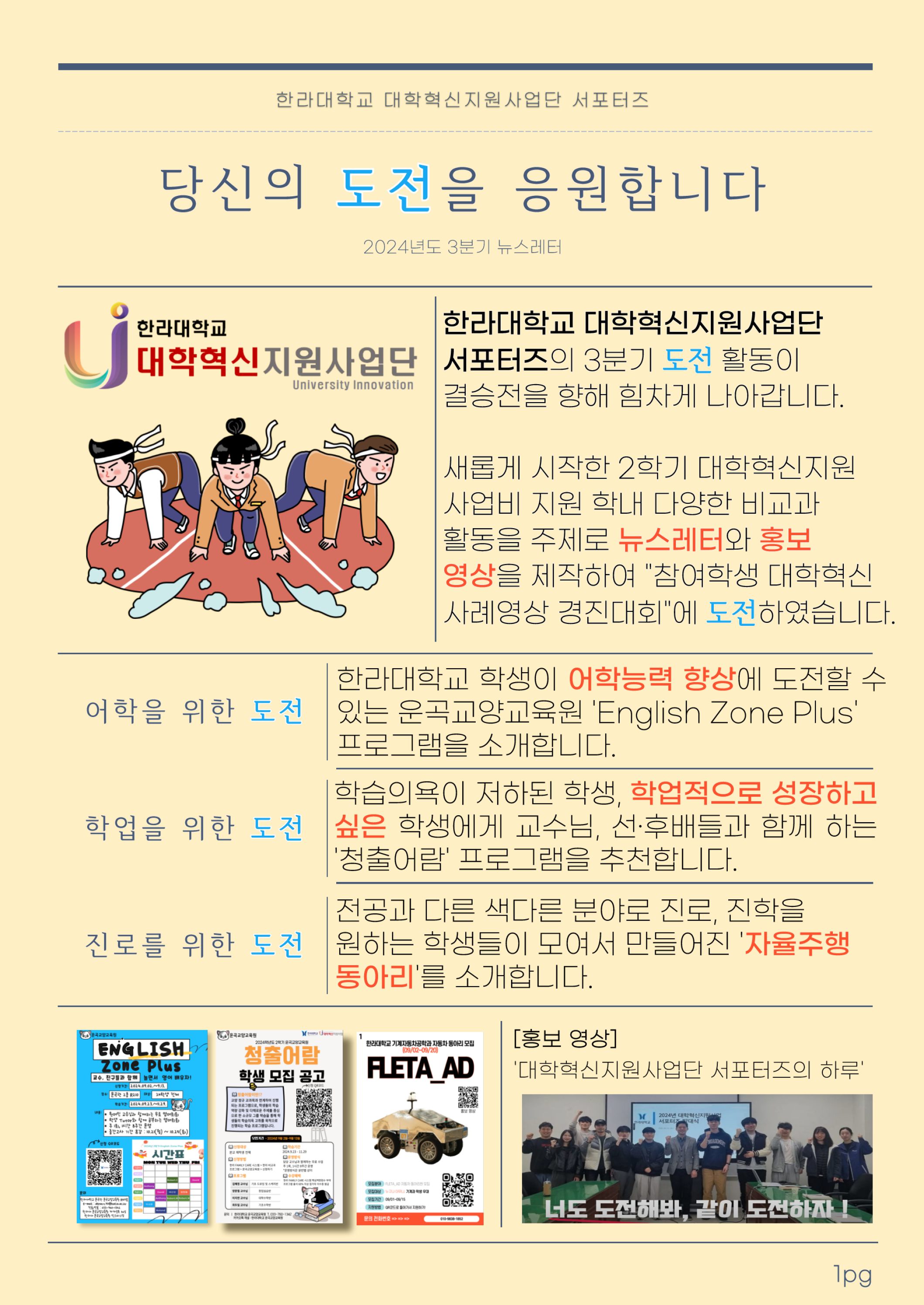 대학혁신지원사업단 학생서포터즈 3분기 뉴스레터