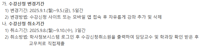 2학기 수강신청 변경 및 취소 안내