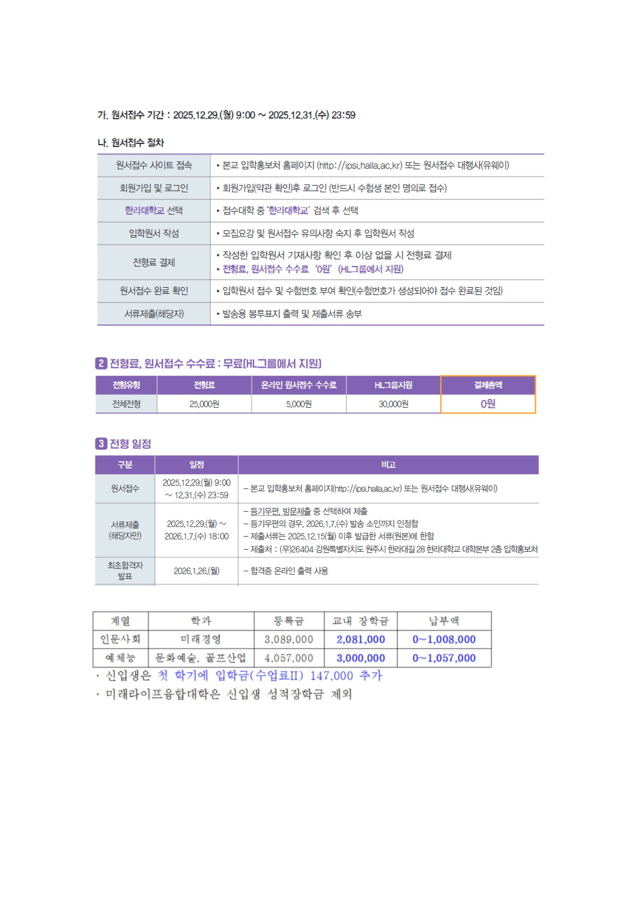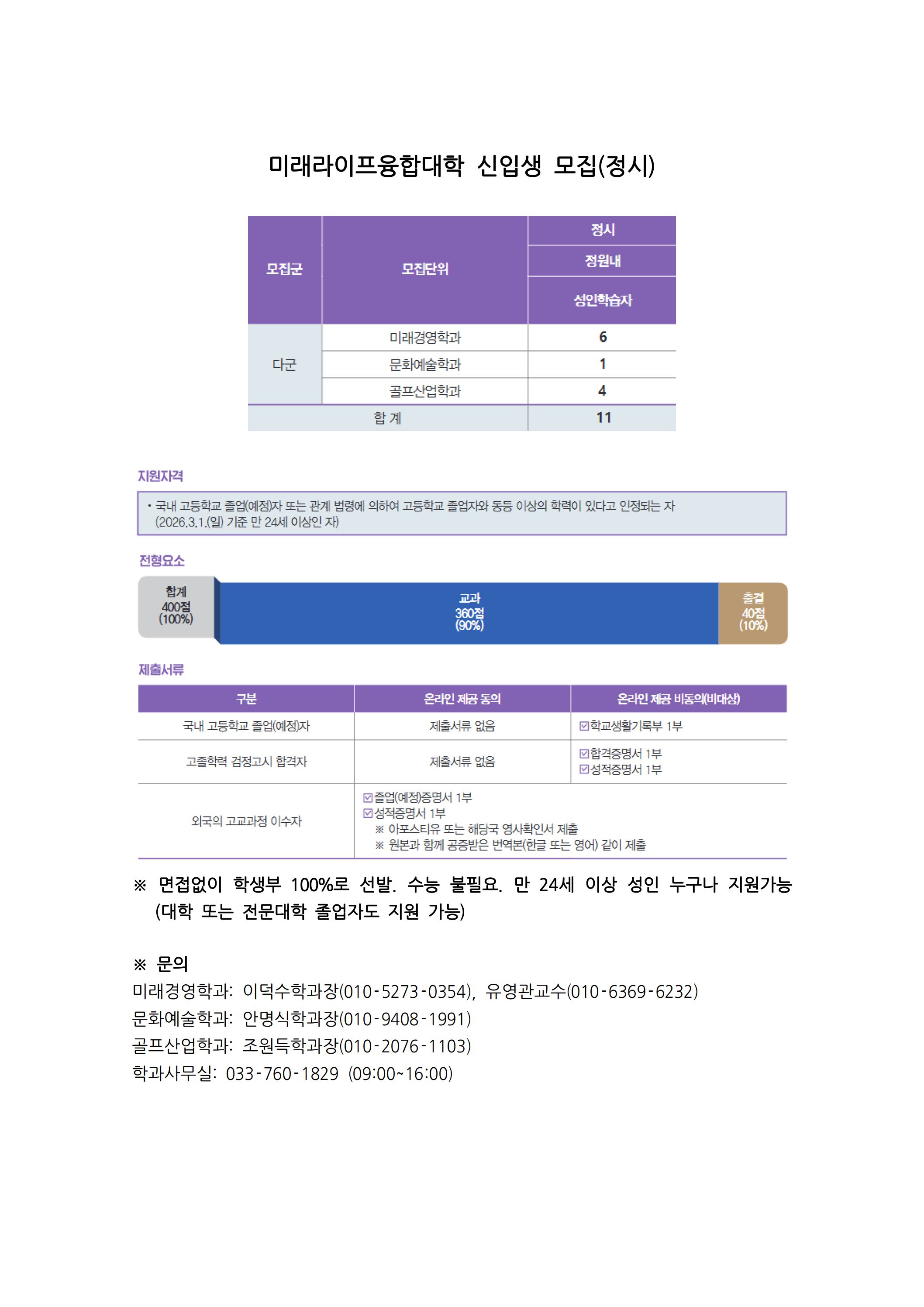 미래라이프융합대학 신입생 모집(정시)